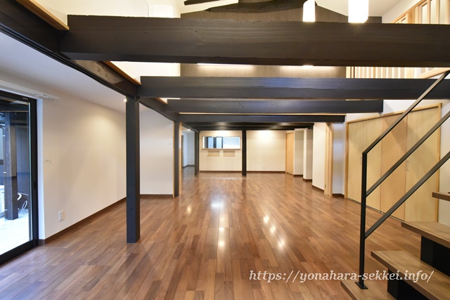 古民家の基礎は石場建てを鉄筋コンクリートべた基礎に改修。耐力壁を追加し上部構造評点を0.18から1.23にアップしました。