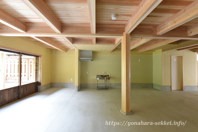 1階に店舗(喫茶店)2階小屋裏物置付住宅(借家)の構成にし、店舗の奥には屋根付きのテラスと内庭が広がっています。